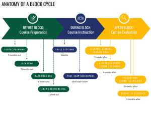 Block Directors are responsible for delivering a block of curriculum to UWSOM Foundations students. This guide is a resource for Block Directors to see the workflow of a block. It is designed chronologically following a block through all of it’s phases from course preparation, to course instruction, and ending with course evaluation and contains information on how to complete block administrative tasks associated with each phase. Although this guide is a valuable resource, it doesn’t replace the importance of collaborating with the foundations team to fully utilize its resources.