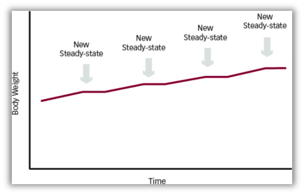 Although patients are frequently blamed, and blame themselves, for “falling off the wagon” over time and expanding their food volume and variety despite intentions, it is more likely that the counter-regulatory processes described above are responsible for return to higher caloric intake and return of weight. It is very important not to use one’s personal experience with diet and weight to advise patients, given multifactorial determinants of diet, energy balance and weight.