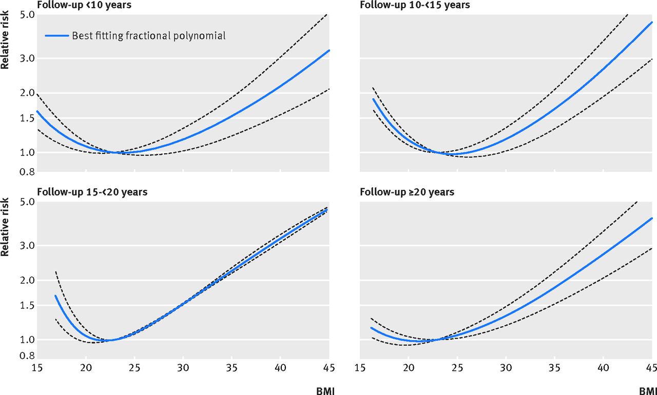 While there is a strong correlation with morbidity and mortality at both ends of the BMI spectrum, determining the inflection point for increased mortality has been difficult despite many large metanalyses. The difficulty in establishing these correlations and, particularly, their relevance to an individual patient, is because of the numerous confounders of body size and mortality, the inherently flawed measure of BMI, the necessarily large time delay to analyzing huge population databases, and the improvement in cardiometabolic healthcare.